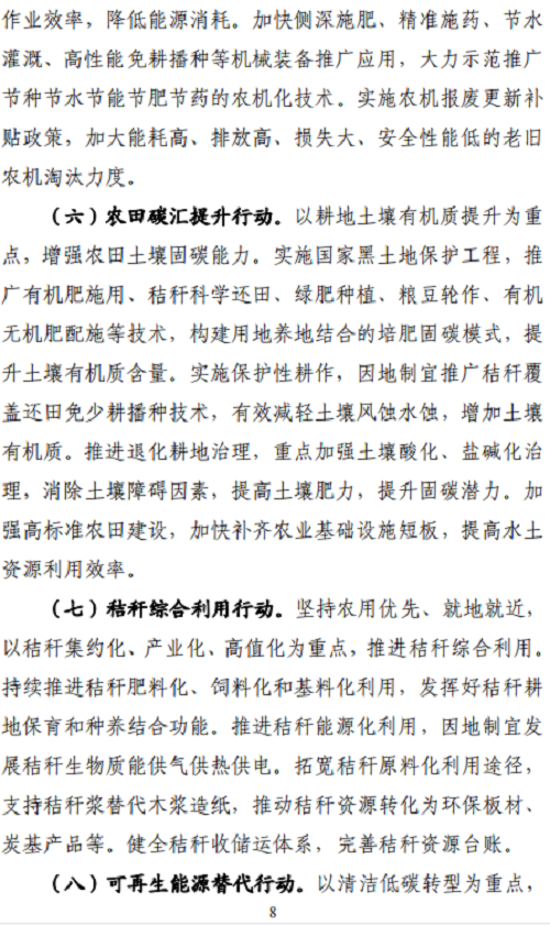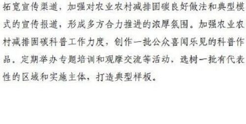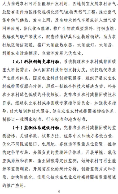 9、科技創(chuàng)新支撐行動。系統(tǒng)梳理農(nóng)業(yè)農(nóng)村減排固碳重大科技需求,加大國家科技計劃支持力度。